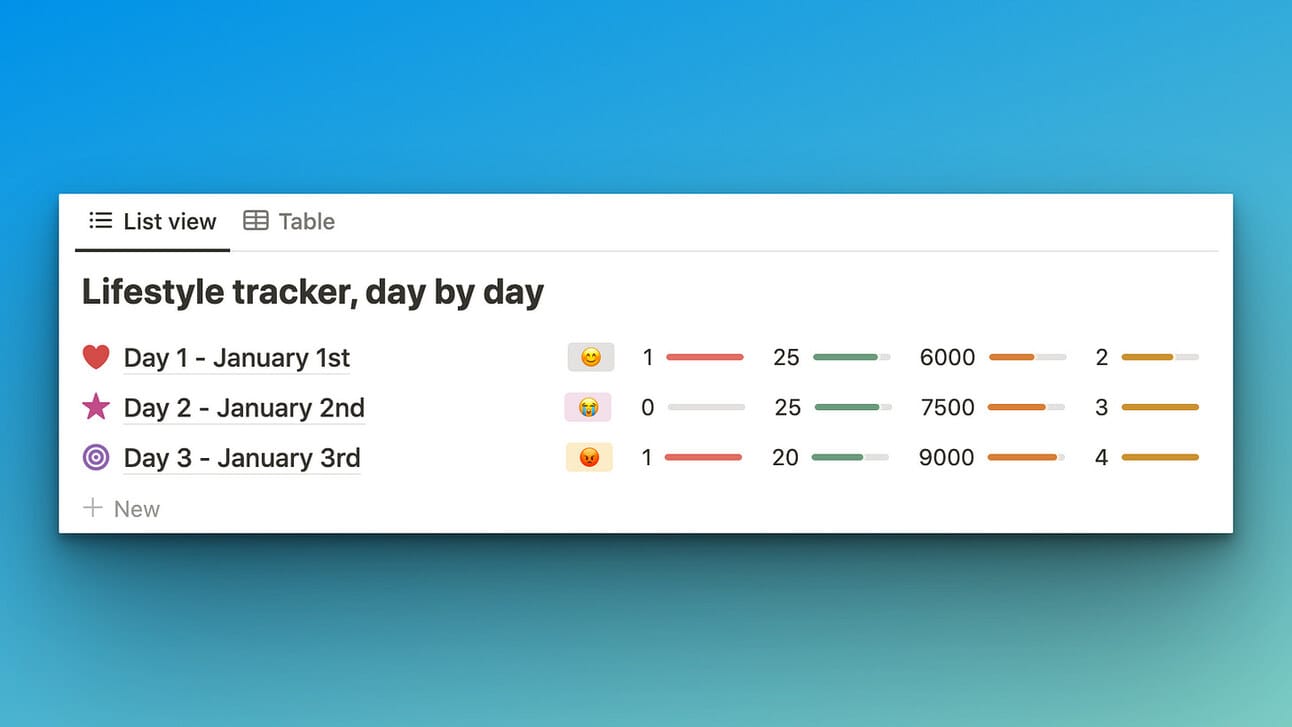 Typically I avoid new year's resolutions and Notion templates (because I find creating things from scratch works better), but I found myself creating a lifestyle tracker to hopefully help me focus and keep track of the things that are important to me.